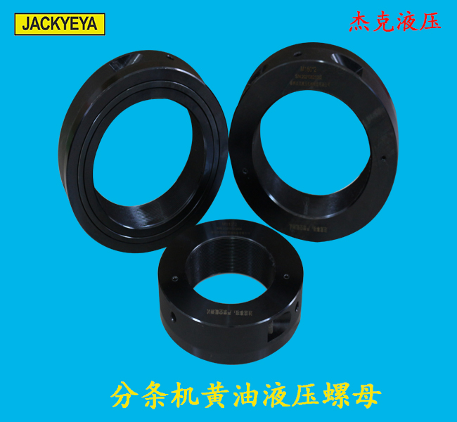 ??? 分條機黃油液壓螺母,黃油液壓螺母屬于油脂型液壓螺母,主要驅動方式是黃油液壓驅動,黃油液壓螺母用于需經常拆裝的螺栓;超大螺栓的預緊;大型工件的鎖緊等場合。并可做液壓過盈連接拆裝工具。在錐形軸或軸套上安裝或拆卸軸承,通常是既困難又耗時的工程。使用液壓螺母.可以提高工作效率,減少此類問題。其原理是液壓油被高壓油泵輸入螺母中產生推動活塞的力.滿足安裝或拆卸軸承--毫不費力,既準確又安全。